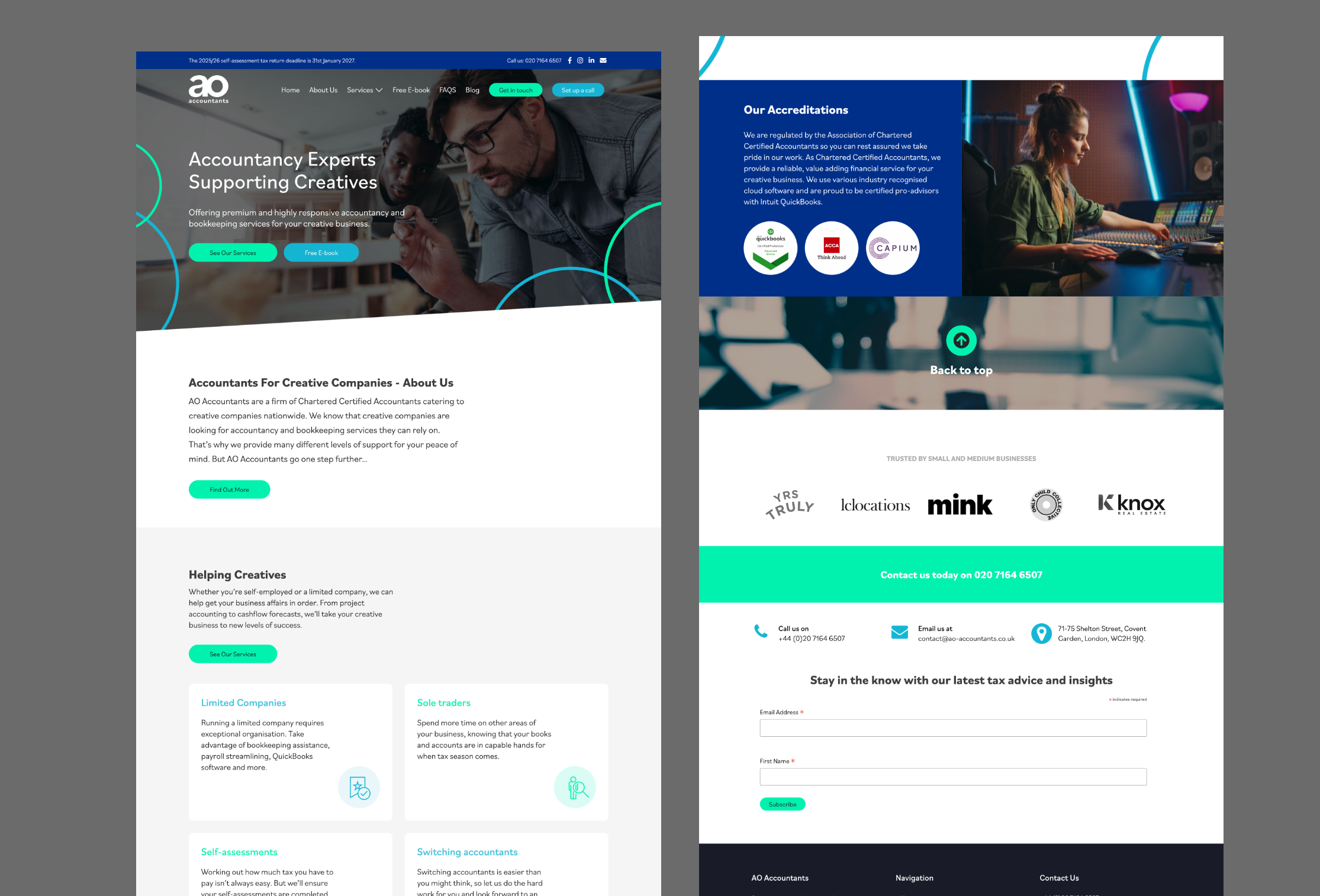 Website update for AO Accountants, Offering premium and highly responsive accountancy and bookkeeping services for creative businesses. Want to upgrade or redesign your Accountants company website? Pop us a message!